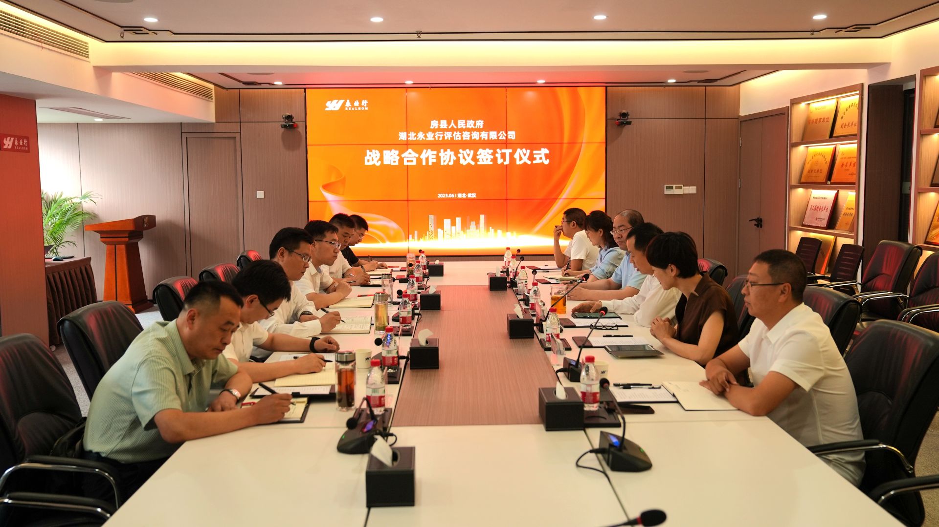 今日房县网讯 记者 李硕 报道:6月16日,县委副书记、县长谢晓鸣在武汉前往湖北永业行评估咨询有限公司考察对接工作,房县人民政府与永业行签订战略合作协议。永业行党委书记、董事长潘世炳出席仪式。