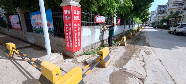 与会人员来到“西水南路、凤凰郡二期新路”路段,听取相关工作汇报,详细了解两条小巷的公益广告设置、环境卫生治理、“飞线”整治、停车秩序整顿、沿路商家违规占道经营等重点工作情况。