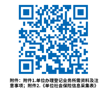 可以扫描下方二维码查看“单位办理登记业务所需资料及注意事项”及下载《单位社会保险信息采集表》。