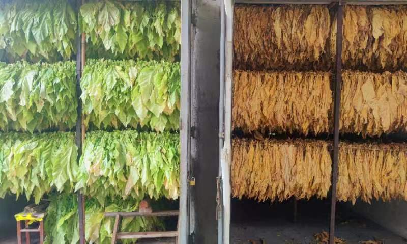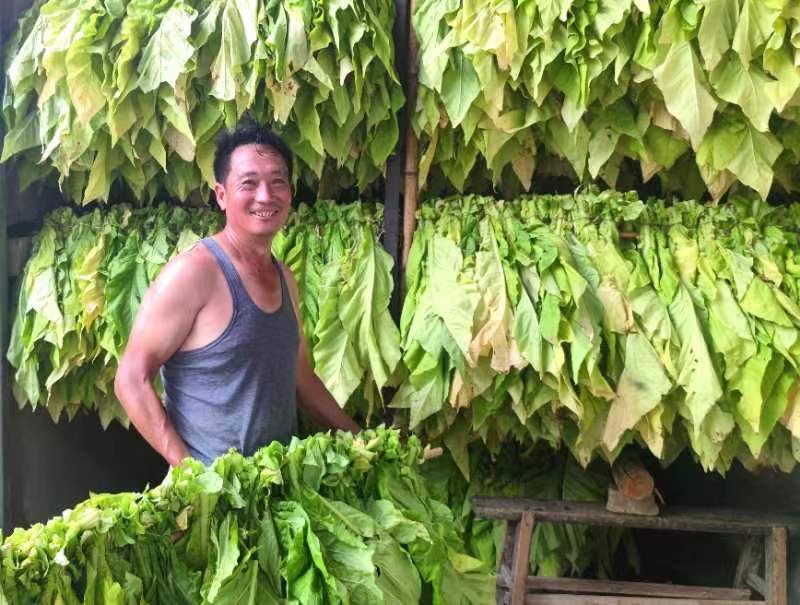 “采摘的烟叶按照分拣、挂杆、再送进烤烟炉,经过5-7天的恒温烘烤,便可出炉。自己今年种了40亩烟叶,每亩可烤出成品烟250斤,按现在的采收价格每斤15元,预计一年可增收8万元”。烟农吴作操笑着说道。