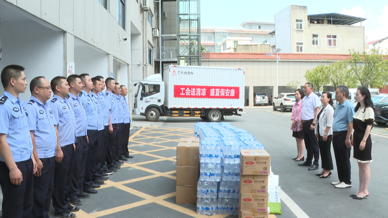 县委常委、统战部部长、县总工会主席丁选清,副县长邹莉一行先后来到县交警大队、变电站、环卫所、鑫资企业,为在高温下坚守岗位的一线职工,送去矿泉水、十滴水、绿豆、白糖等防暑物资,总价值20余万元。