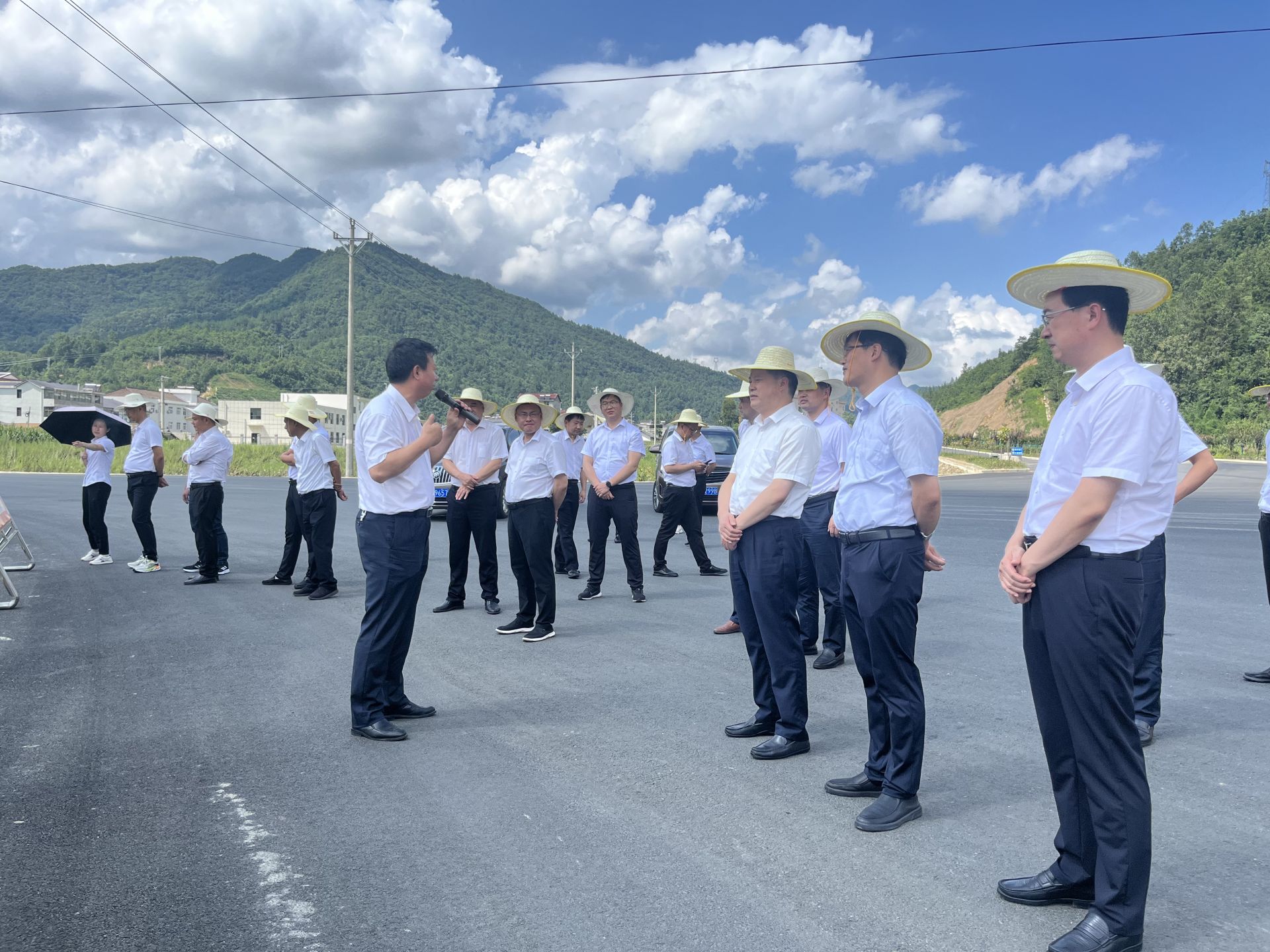 与会人员一行来到军店镇中村村白鹤湾田园综合体路段、土城镇十房一级路龙坪立交路段,通过实地查看、听取介绍等方式详细了解房县农村公路建设情况以及十房一级路项目施工进度、基础设施建设等。