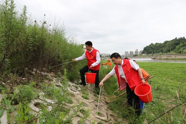 纪道清、谢晓鸣与干部群众一起拿着夹子、垃圾桶等工具,在河道沿岸捡拾垃圾、杂物。经过近一个小时的辛勤劳动,河道沿岸垃圾迅速“清零”。纪道清一行还巡查河道环境情况,了解河长制落实、防汛工作情况。