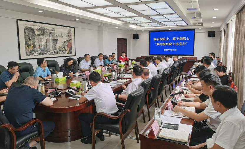 房县新闻网讯 记者 李硕 报道:7月20日至21日,中国科学院院士、华中农业大学教授张启发,中国科学院院士、武汉大学教授邓子新带领院士专家团队来房县,开展“乡村振兴院士房县行”活动,围绕科技助力乡村振兴开展一系列调研,围绕黄酒产业项目落地、优质稻米种植、黄酒系列产品研发等方面达成一系列合作。县委书记纪道清,县委副书记、县长谢晓鸣参加活动。