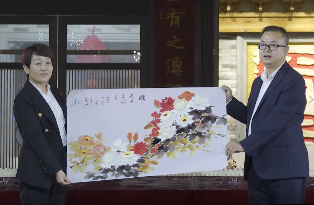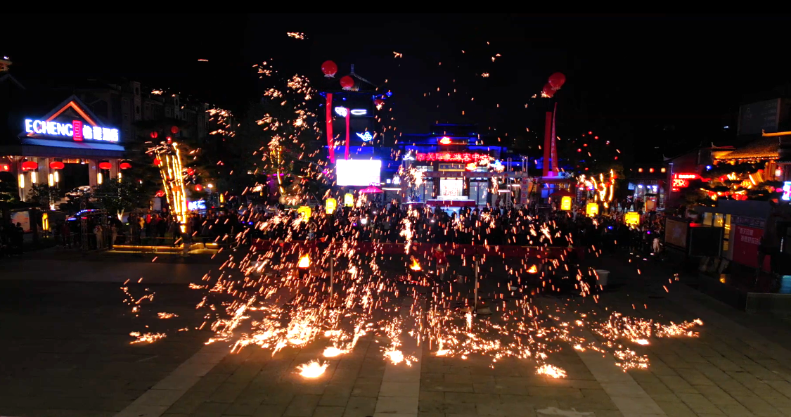 活动现场人头攒动,热闹非凡。富有特色的歌舞表演轮番上演,有奖问答、游戏互动精彩连连。开场舞《周南行》、古典女子群舞《花间意》、双人舞《水云间》将诗意舞姿转化成了视觉艺术,现场观众不时拿出手机记录下精彩瞬间;房县西关老街文旅有限公司董事长、罗国士关门弟子、罗氏月季非遗传承人罗良军现场大秀技艺、大展身手,一副艳丽华滋、饱满丰韵的画作——牡丹跃然纸上;非遗技艺“打铁花”更是惊艳亮相,掀起了整场庆典活动的高潮,打花艺人轮番用花棒将上千度的铁汁击打到棚架上,黑夜瞬间被四射的花火照亮,流星如瀑,现场观众纷纷叫好。
