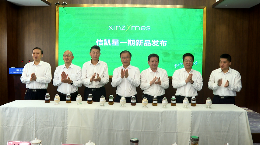 中国科学院院士、合创城项目发起人邓子新,省经信厅一级巡视员孟春林,市政协副主席刘庆涛,上海佶凯星生物科技有限公司董事长赵吉斌,县委书记、县长谢晓鸣等领导嘉宾为新产品发布揭幕。