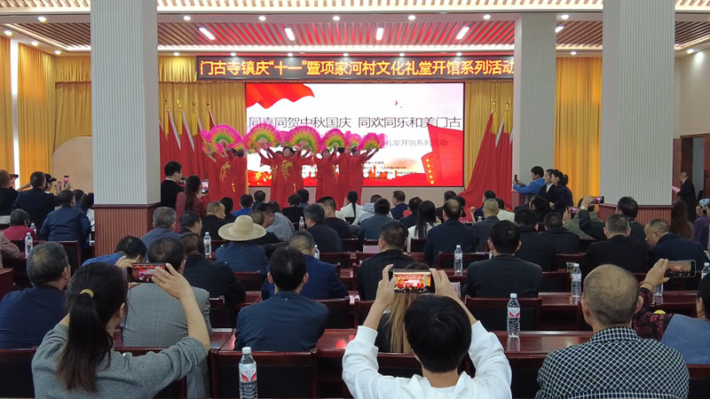在参观结束后,门古寺镇组织镇直单位、各村及民间艺人精心编排了文艺节目,庆祝“十一”及文化礼堂的顺利开馆。活动中,民歌合唱《十杯酒》,传统舞蹈《又见江南雨》等。充分彰显了门古寺镇在精神文明建设上的成果,展现的门古寺镇作为“民歌之乡”的特色文化。演出结束后,县民政局现场为群众开展民政政策解读、发放宣传册。