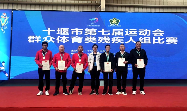 房县残疾人代表队付长勇、周斌、瞿仁宏参加了乒乓球男单比赛,张昌宏参加了象棋比赛。经过激烈拼搏,来自白鹤镇双河村21岁的付长勇表现出色,获肢体组乒乓球男单第一名;房县残疾人代表队获乒乓球团体赛第二名;房县代表队获十堰市第七届运动会群众体育类残疾人组体育道德风尚奖。