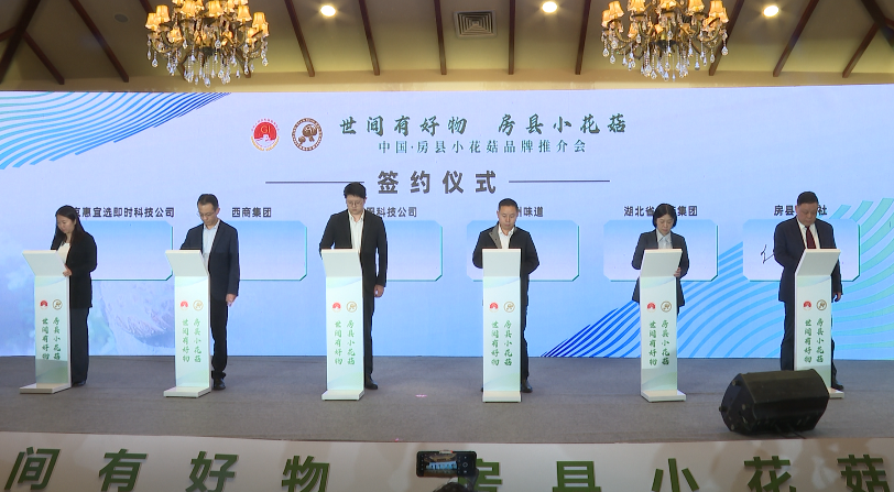 签约仪式上,副县长操航代表县人民政府与上海市农科院成果转化处签订房县小花菇质检合作协议,与武汉大学质量发展战略研究院签订房县小花菇品牌打造战略合作协议,与湖北省乡村振兴投资集团签订战略合作框架协议。房县供销社与湖北省香菇集团公司签订产品购销合作协议,房州味道与云服科技公司签订产品购销合作协议,西商集团与北京惠宜选即时科技公司签订产品购销合作协议。