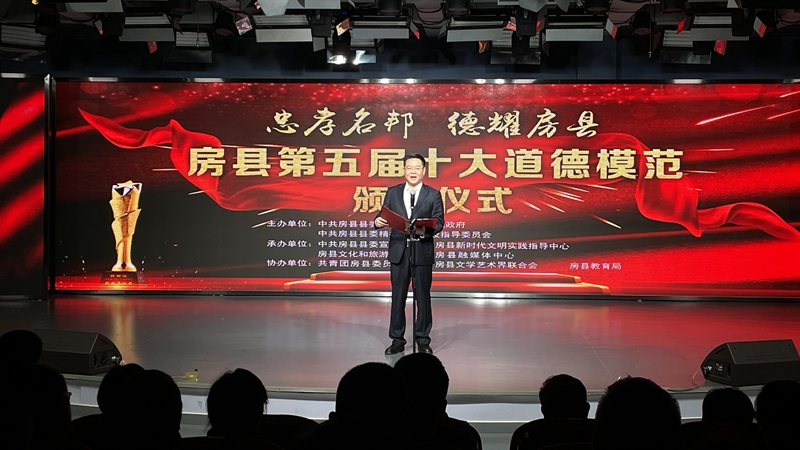 今日房县网讯 记者 刘臣 秦珊珊 报道:12月4日晚,房县第五届“十大道德模范”颁奖仪式在县融媒体中心演播大厅举行。伴着热烈的掌声,来自不同行业的道德模范在鲜花、奖杯和掌声中接受属于他们的荣誉和礼赞。他们用触动人心的故事,激发着全社会向上向善的正能量,汇聚着构筑“忠孝名邦”的不竭动力。