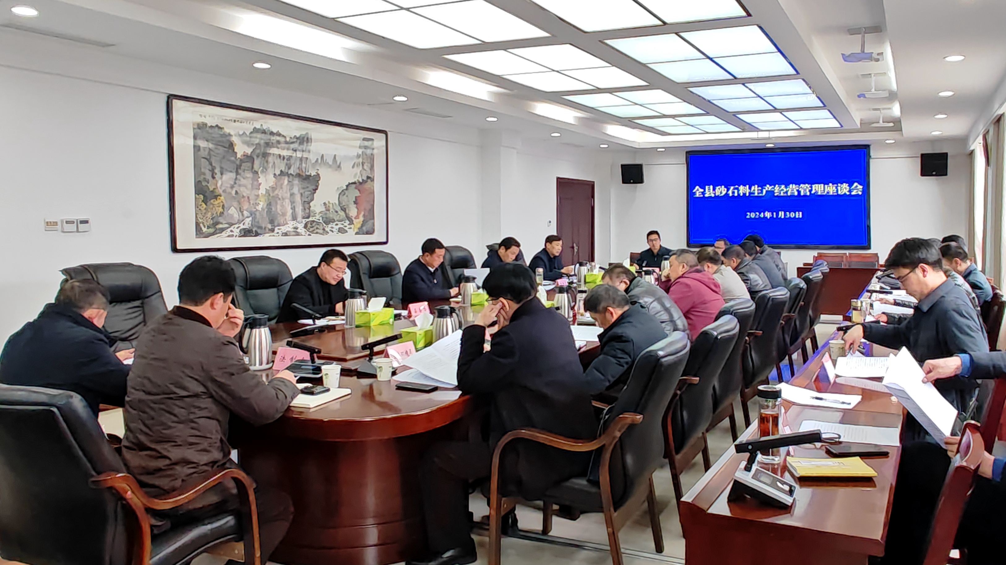 会议宣读了《关于成立全县砂石料生产经营管理工作领导小组的通知》;听取审议了《关于砂石料生产经营管理的六条意见》《关于进一步规范全县砂石料生产经营管理的工作方案》;参会的21个单位就相关内容进行交流讨论发言。