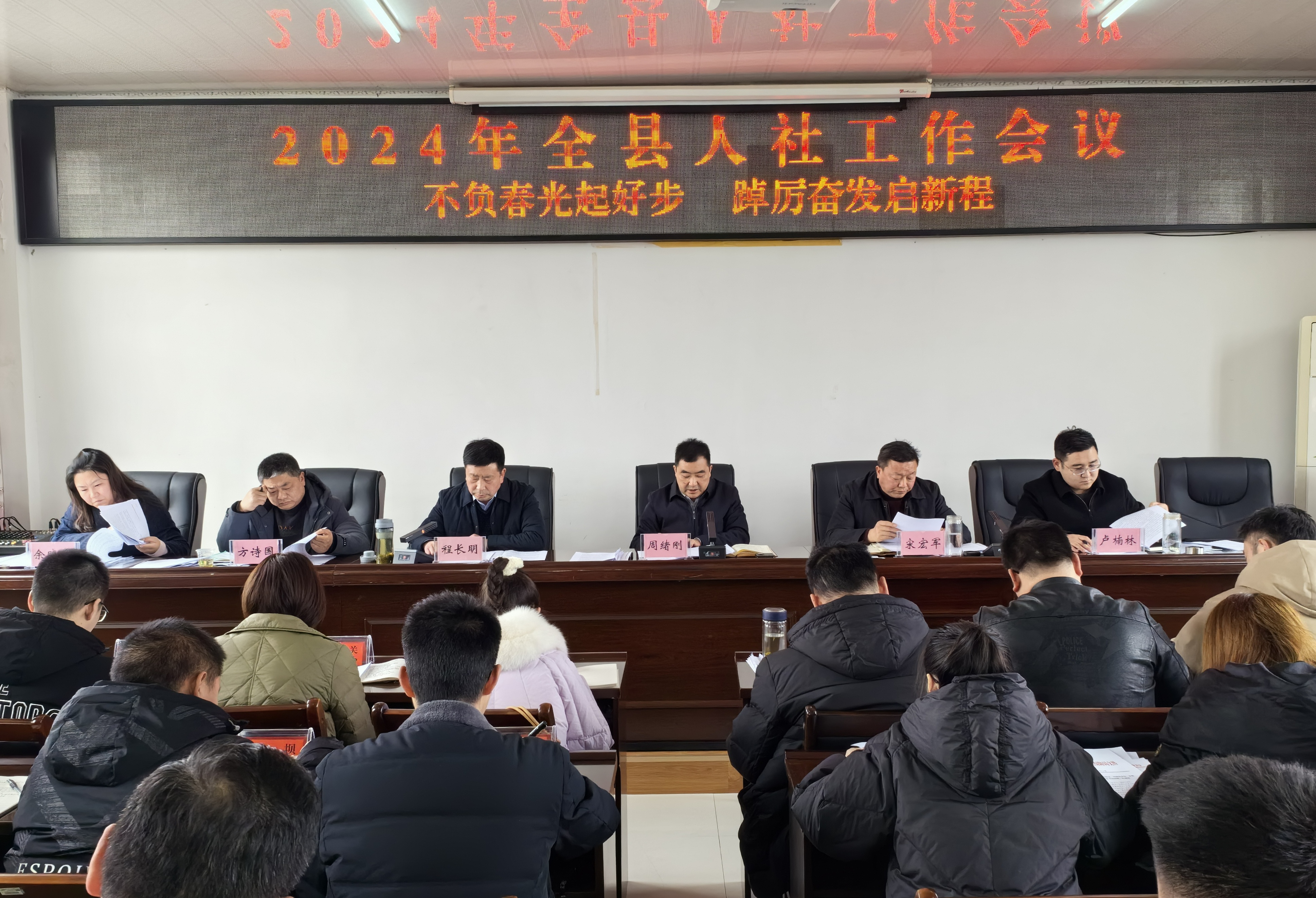 会议要求,2024年全县人社系统要以习近平新时代中国特色社会主义思想为指导,全面贯彻党的二十大精神和省委、市委、县委经济工作会议精神,认真贯彻落实全国、全省和全市人社工作部署,始终树立“业绩一流、队伍过硬、群众满意”三大目标,牢牢把握“稳就业、聚人才、强保障、促发展、铸铁军”主基调,推进全面从严治党,持续加强能力作风建设,勇争先创一流,为建设绿色低碳循环发展示范县贡献人社力量。