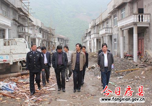 图为县委副书记张慧彬(右二)查看九道乡义渡坪移民安置小区