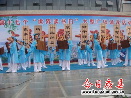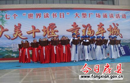 今日房县网讯 通讯员陆龙杰报道: 4月23日是第十七个世界读书日。22日上午,“大美十堰、幸福车城”广场诗文诵读活动在十堰市人民广场隆重举行,两千余市民齐聚广场诵读经典。房县县委宣传部作为本次活动的协办单位,派出两支代表队参加诵读活动,县委常委、宣传部长徐锦凤亲临活动现场并与广大市民一起参与经典诗文诵读活动。