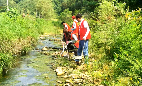 河道清理组的志愿者们身穿红马甲,手拿垃圾钳、垃圾袋等工具,对河道沿线开展巡查、清扫、捡拾白色垃圾及烟头、废纸、瓶盖、包装袋等。此外,志愿者们还主动当起宣传员、引导员,向周边村民发出保护河流、维护生态环境的倡议,对乱倒污水、乱扔垃圾等不文明行为进行劝导,引领更多人从“旁观者”转变成为“实践者”,共同守护绿水青山。