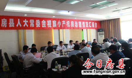 视察组一行先后来到花宝、白露等小区实地察看 了小产权房治理情况。随后人大常委会听取城关镇、住建局、国土局关于小产权房治理情况、《城乡规划法》及《土地管理法》实施情况的汇报,各位委员就小产权房治理情况展开讨论,提出各自的意见和建议。