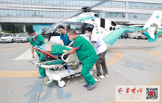 上午10时17分,直升机从健康广场起飞;10时48分在郧西指定地点降落,随机医护人员对患者进行了紧急处理,并将患者及时转运至直升机上;10时58分再次起飞,11时29分顺利返回十堰人医。原本陆地转运患者单趟需要2个半小时,十堰人医直升机仅用时31分钟,为患者赢得了宝贵的救治时间。