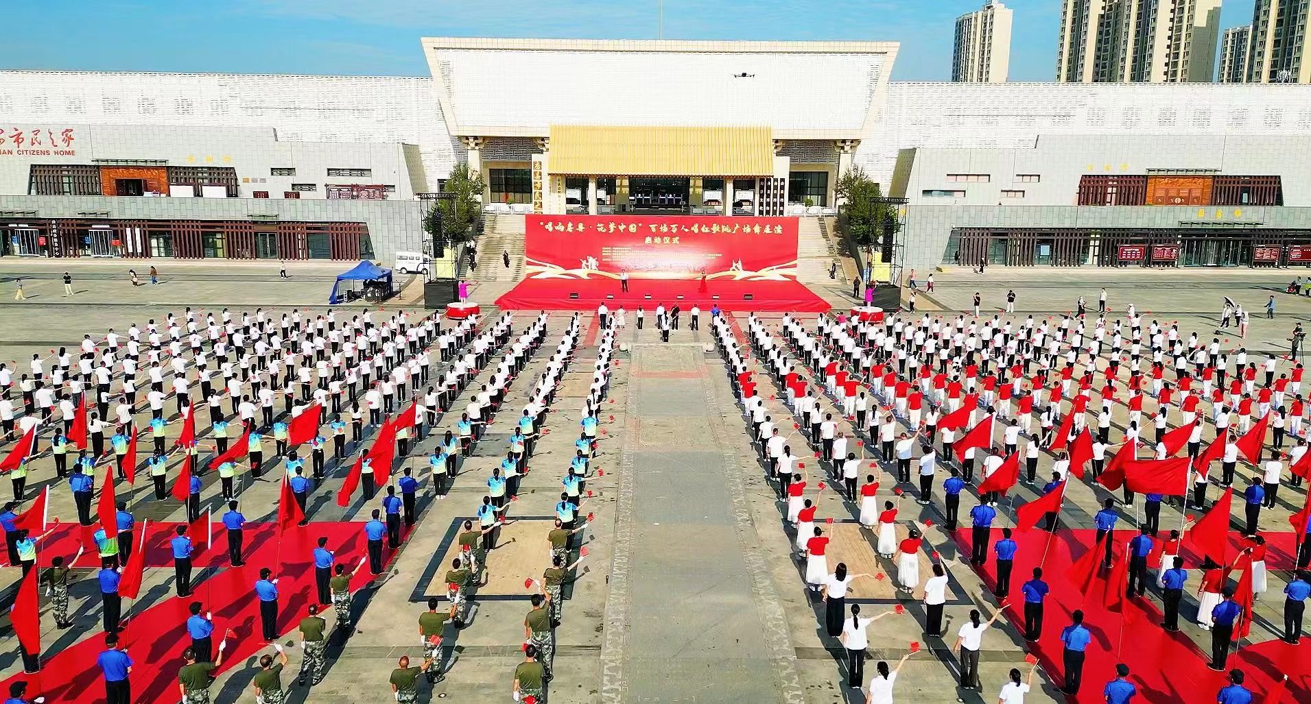 随后,全体人员以《我们都是追梦人》《中国红》两首红歌为伴奏,进行了广场舞展演,全体队员整齐划一,动人的旋律、飞扬的舞姿,舞出大家对祖国的热爱和身为华夏儿女的骄傲和自豪。