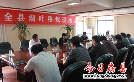 今日房县网讯 记者桂涛报道: 10日,全县2012年烟叶移栽现场会在土城镇召开,会议要求,要迅速在全县范围内掀起烤烟移栽工作高潮,5月20日前全面结束移栽工作,确保全县2012年烟叶生产目标任务顺利完成。县政协主席陆毅,县烟叶办、烟叶公司负责人,10个烟叶乡镇分管领导、烟站站长参加会议。