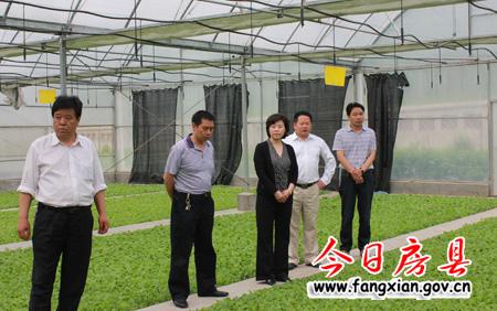图为陆毅(中)和与会人员参观土城镇土城村烟叶育苗大棚