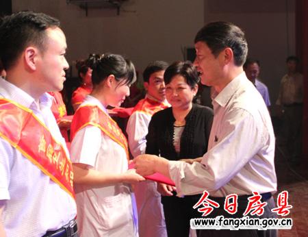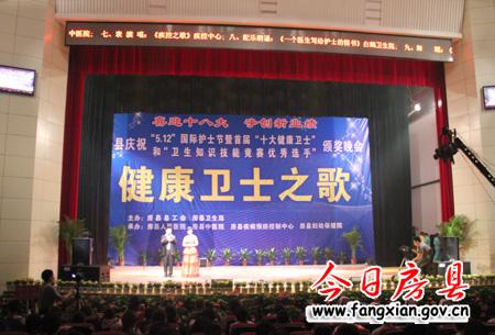 今日房县网讯 记者何琼 见习记者刘臣 报道:为庆祝第100个国际护士节,10日,我县在影剧院举办了首届“十 大健康卫士”和“卫生知识技能竞赛优秀选手”颁奖晚会。县领导徐锦凤、丁宪章、姚峰、田松、王学能等出席了晚会,并为获奖选手颁奖。