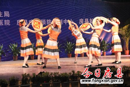 图为县中医院表演的舞蹈《丰收忙》