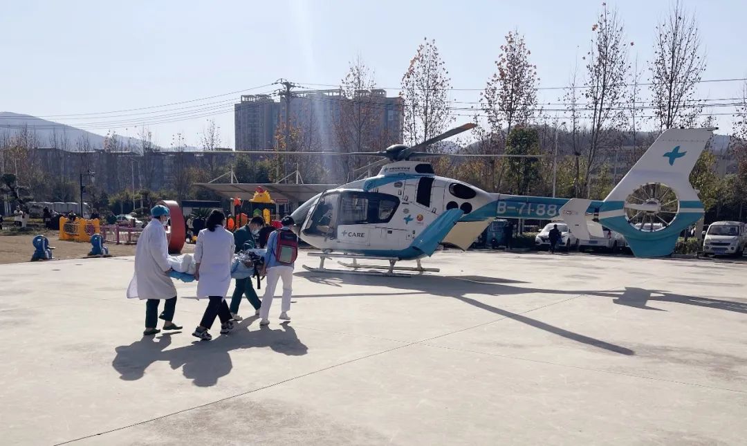 今天上午,考虑到患者病情较重,家属联系十堰人医航空救援科,要求通过直升机将患者转到该院进一步救治。