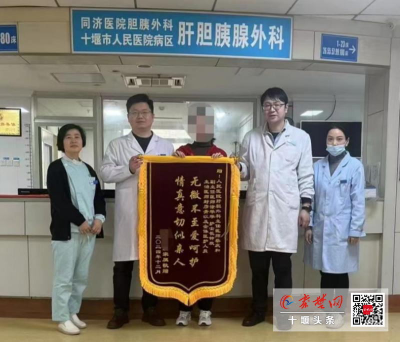术后第二天,毛先生就能下床活动。经过一段时间的康复治疗,他的体重逐渐增加,精神状态饱满。当毛先生得知可以出院回家时,激动之情溢于言表,特意送来锦旗表达对十堰人医肝胆胰腺外科专家团队的感激。