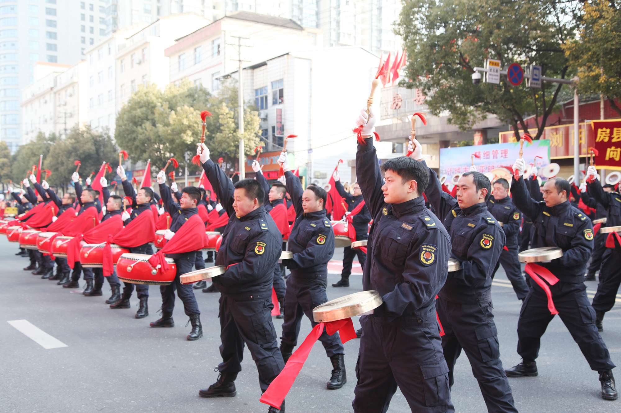 此次大巡游共分“幸福房县·锣鼓震天”“文化自信·传承经典”“凝心聚力·捷报频传”“不忘初心·再启新程”四个篇章,涵盖了民俗、歌舞、器乐、队列、花车等表演形式,全程持续近3个小时。巡游队伍所到之处,街道两旁市民驻足观看,大家纷纷拿起手机拍照打卡,记录下精彩的瞬间。激昂的锣声鼓声、人们的掌声欢笑声交织在一起,处处洋溢着浓浓的节日喜庆氛围。