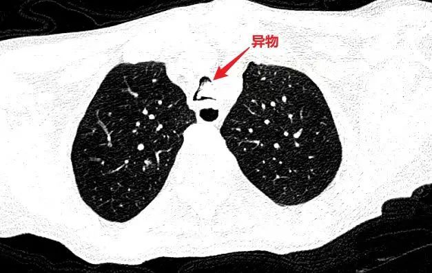 “患者送院时呼吸极度困难、口唇紫绀,血氧饱和度急剧下降,最低达50%。”急诊科接诊医生回忆道。急诊完善胸部CT显示,老人主气管内有一块类似核桃体积大小的异物,导致气道近乎完全阻塞,随时可能引发窒息。