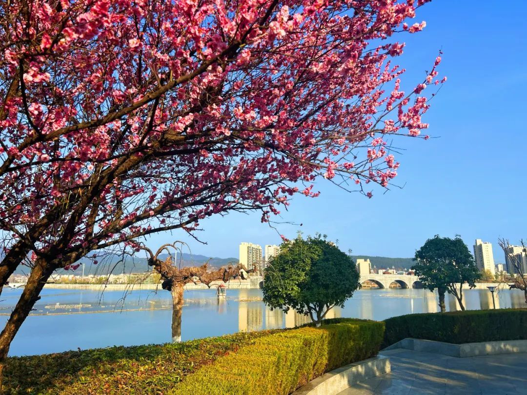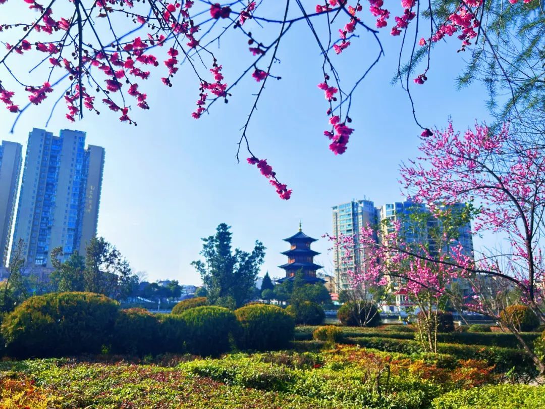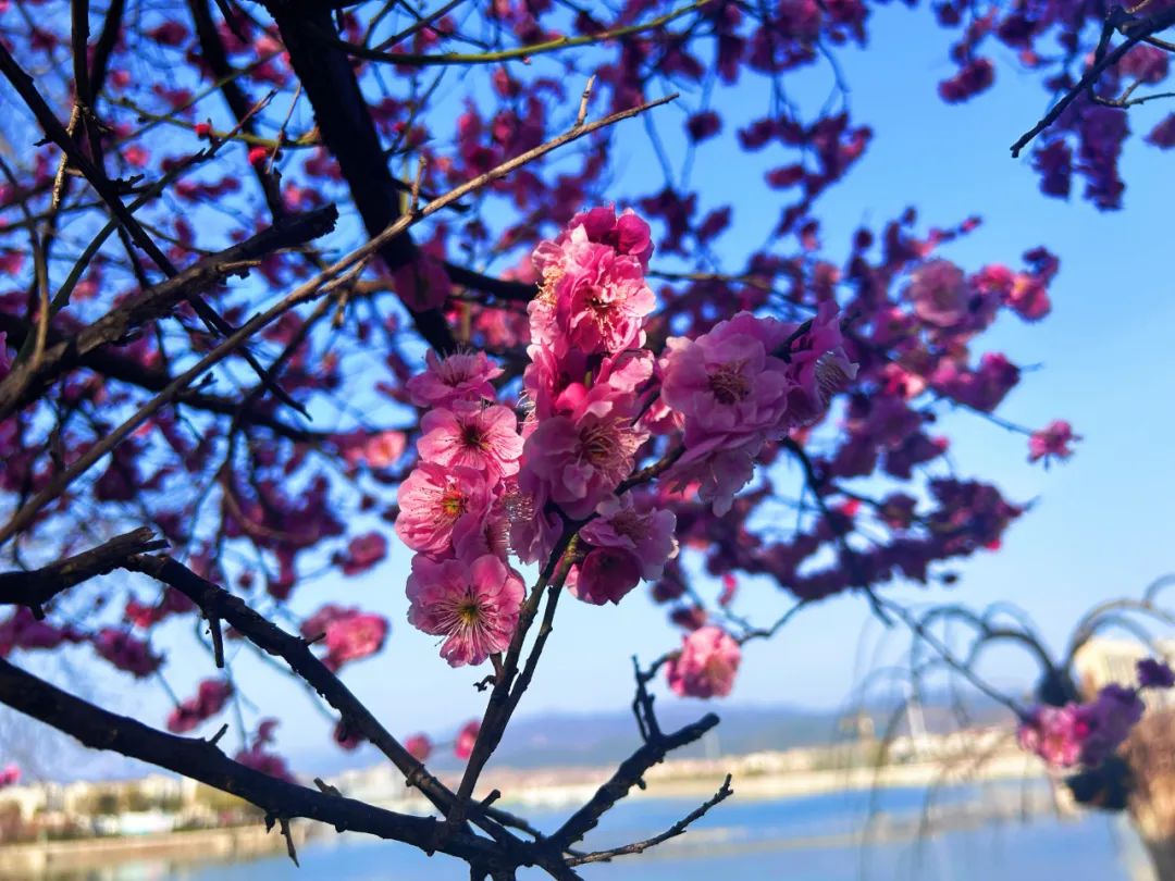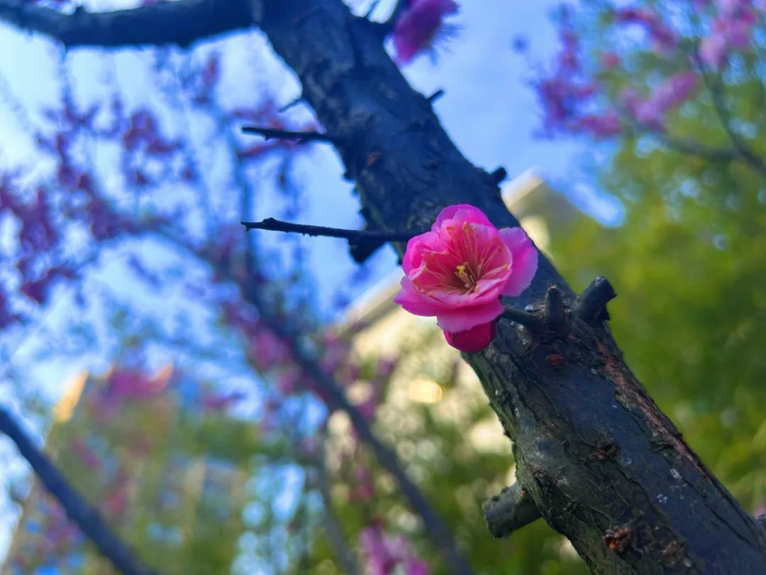 街头盛开的限定梅花挂满枝头