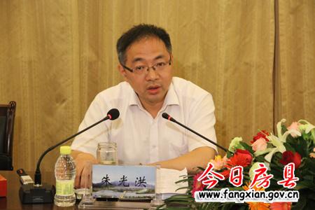 图为县长朱光洪全县城市建设与管理推进会上作重要讲话