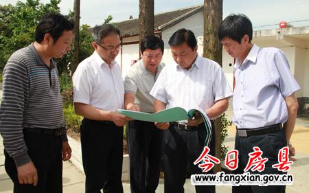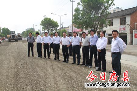 图为沈明云、朱光洪等县领导察看房陵大道西延工程建设情况