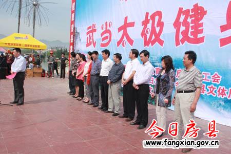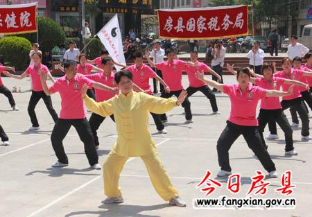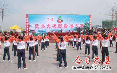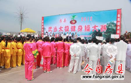 今日房县网讯 记者田兰兰 16日,我县武当太极健身操大赛在西河广场举行,来自全县机关、社区、学校的27支队伍参赛。县领导丁宪章、姚峰、田松、王学能,市文体局副局长周高潮出席大赛开幕式并观看比赛。