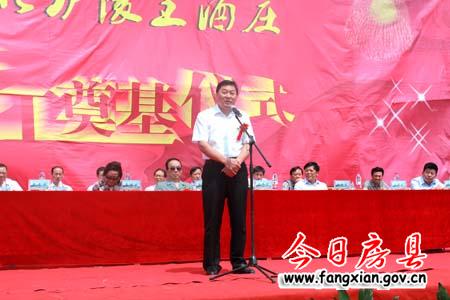 开工仪式上,县委书记沈明云指出,庐陵王酒庄项目的开工,是开展“项目建设年”的一大硕果;标志着我县抢抓鄂西生态文化旅游圈建设机遇,“借两山盛名,承两山辐射,与两山互补,同两山相融”,倾力打造武当山、房县、神农架旅游“金三角”,实施“旅游立县”战略的迈出了可喜的一步;庐陵王酒 庄项目以文化为特色,以商业为载体,将文化融入休闲,在休闲中体验文化,从而实现文化与商业的有机 结合,打造以文化为主题的城市体验式休闲消费区,必将有力推动房陵文化的挖掘,促进文化旅游产业的 发展,加快我县建设全国生态文化旅游名县步伐;县直各相关部门和城关镇党委、政府要进一步发扬服务 业主、服务发展的主人翁精神,为所有来房投资者营造最好的创业发展环境,让所有投资者投的安心、投 的放心;希望业主方科学组织,优化调度,精细施工,努力把庐陵王酒庄项目建成优质工程、精品工程。
