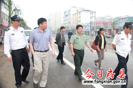 县委常委、武装部政委王岩在相关单位负责人的陪同下查看路面环境卫生情况
