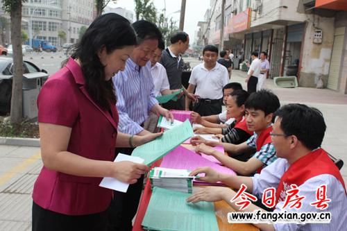 图为县领导查看宣传资料