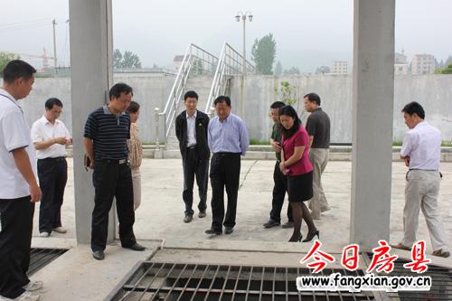 图为县领导检查县污水处理厂