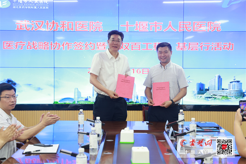 秦楚网-十堰头条讯 通讯员 阮靖雯 报道:5月16日下午,华中科技大学同济医学院附属协和医院(以下简称“武汉协和医院”)与十堰市人民医院医疗战略协作签约仪式暨“双百工程”基层行活动在十堰市人民医院举行。这标志着武汉协和医院与十堰市人民医院在医疗领域的合作迈向新台阶,将为提升区域医疗服务水平注入强大动力。