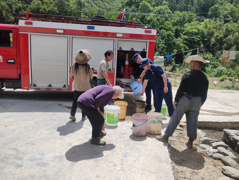 送水过程中,消防救援人员驾驶消防水罐车,将清澈干净的饮用水送至村内集中供水点,并协助村民接水、储水。针对行动不便的孤寡老人和困难家庭,队员们主动提供上门送水服务,确保每一户村民都能及时用上安全水、放心水。此外,消防人员还向村民普及节水常识和消防安全知识,进一步提升群众的防灾减灾意识。