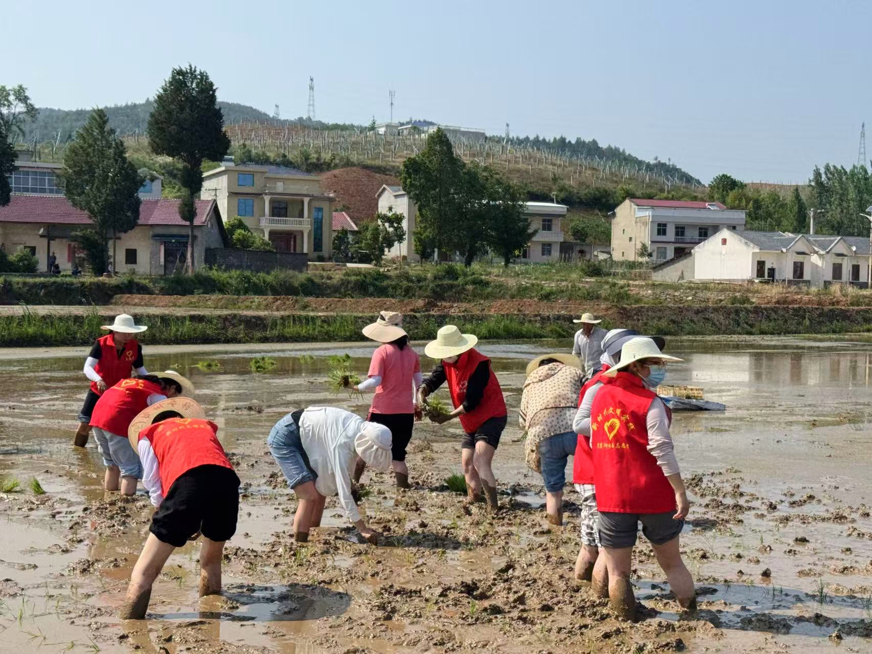 随后,干部们迅速分成插秧、抛秧、运苗三个小组投入劳作。插秧组率先下田,他们挽起裤腿,弯下腰身,将一株株嫩绿的秧苗整齐地插入水田;抛秧组的干部们站在田埂上,娴熟地将秧苗均匀抛向指定区域;运苗组则来回穿梭,确保秧苗供应及时。尽管泥水打湿了衣衫,汗水浸透了后背,但大家的热情丝毫不减。经过三个多小时的奋战,水田披上了崭新的“绿装”,一株株秧苗整齐地插在田间。