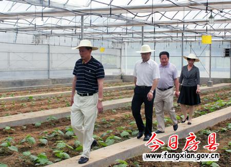 武汉市烟草专卖局局长梁斌在县领导朱光洪、陆毅陪同下考察烟农合作社大棚蔬菜种植情况