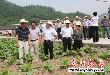 今日房县网讯 见习记者刘臣 通讯员汤宝龙 报道:16日,武汉市烟草专卖局局长梁斌一行来我县考察现代化烟叶生产模式和技术。县领导朱光洪、陆毅,及相关单位负责人陪同考察。