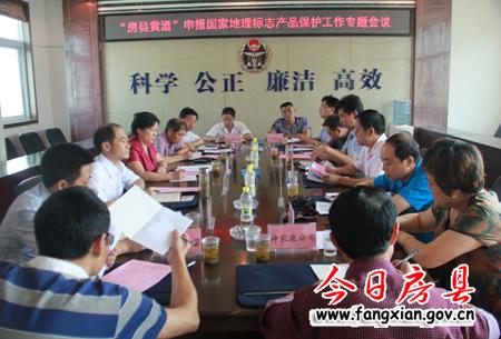 今日房县网讯 记者桂涛实习生向强通讯员胡军 郜丹报道: 20日,“房县黄酒”申报国家地理标志产品保护工作专题会议在县质监局召开,副县长林华、政协副主席李志权出席会议,经信局、工商局、科技局、文体局、档案局、黄酒协会和县内黄酒生产企业负责人参加会议。