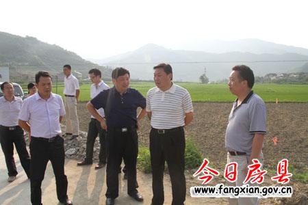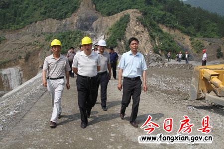 图为县委书记沈明云等领导察看范家垭水库工程进展情况