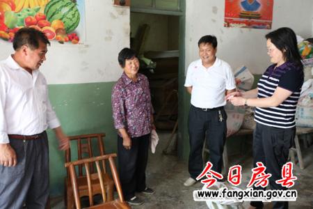 徐锦凤一行来到廖河村,详细查看了水毁河堤新建工程、高龙养鸡场规模、农作物受灾现场,南沟扶贫搬迁安置点,同时,还实地查看了红场村桔梗种植基地长势情况;临近“七一”,徐锦凤还登门看望慰问了老干部、老党员高德强和周汉方,详细了解了他们的生产生活情况,送去了慰问金和县委政府的关怀。