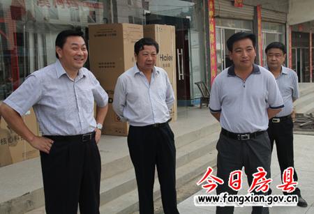 图为沈明云一行察看军店镇双柏移民搬迁小区