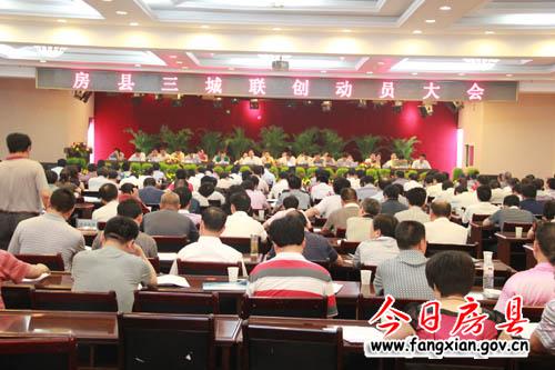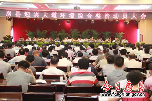 今日房县网讯 记者闻燃报道: 25日,全县“三城联创”暨迎宾大道环境综合整治动员大会在霖泓宾馆会议中心召开,对我县创建全国文明县城、卫生县城、园林县城(简称“三城联创”)工作进行全面部署,同时启动迎宾大道环境综合整治工作,动员全县广大干部群众全力以赴,迅速掀起“三城联创”的活动高潮。县领导沈明云、张慧彬、王启云、陆毅、王家波、刘庆涛、徐锦凤、陈渊、王岩、张永平、姚天国、杜启学及在家的县四大家领导出席会议。县委常委、常务副县长刘庆涛主持会议。