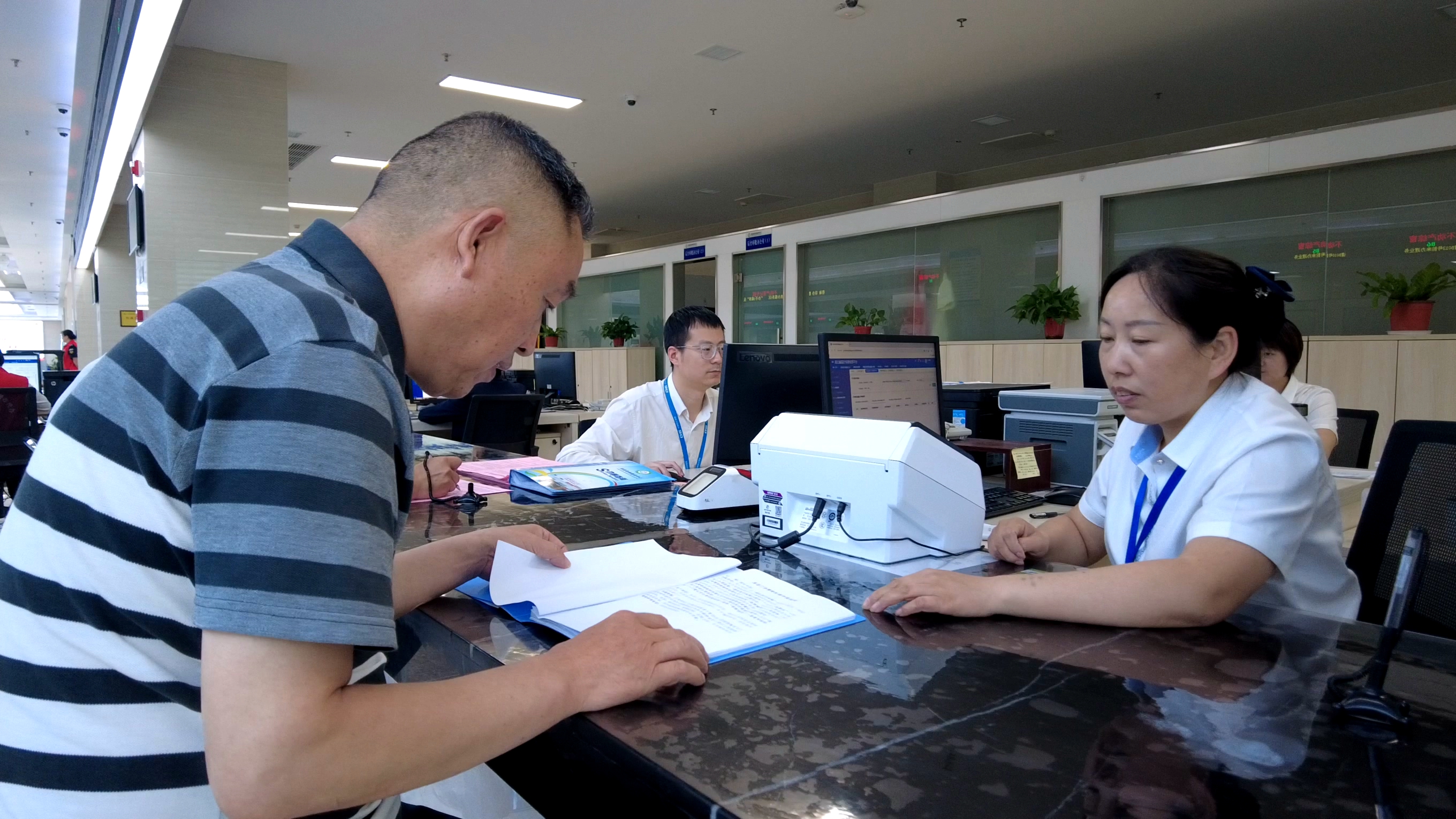 走进市民之家服务大厅,医保窗口的党员示范岗标识醒目,佩戴徽章的党员们热情、专业地为群众办理业务。近年来,县医保局机关党支部推动29项医保服务实现“网上办”“就近办”,16项业务下沉至乡镇,取得了显著成效。在房县政务服务大厅医保窗口,一位前来办理医保报销业务的群众感慨:“我是来办理医保报销业务的,本来以为会很麻烦,没想到工作人员的态度很热情、非常专业,很快就帮我办好了。”市民之家服务大厅的工作人员介绍,现在大部分医保业务都可以通过网上平台办理,减少群众排队等待的时间;对于必须现场办理的业务,也能在就近乡镇服务点完成,真正实现“数据多跑路,群众少跑腿”。