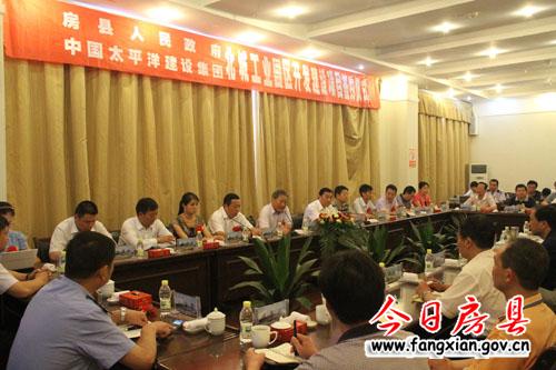今日房县网讯 记者戢太敏 报道: 27日上午,房县人民政府与中国太平洋建设集团在霖泓大酒店举行北城工业园区开发建设项目签约仪式,这标志着双方合作建设项目正式启动。中国太平洋建设集团创始人、董事会主席严介和、中国太平洋建设集团董事局副主席李义勇,县领导沈明云、王启云、刘庆涛、张永平、杜启学、林华、张富华、李相明出席签约仪式。